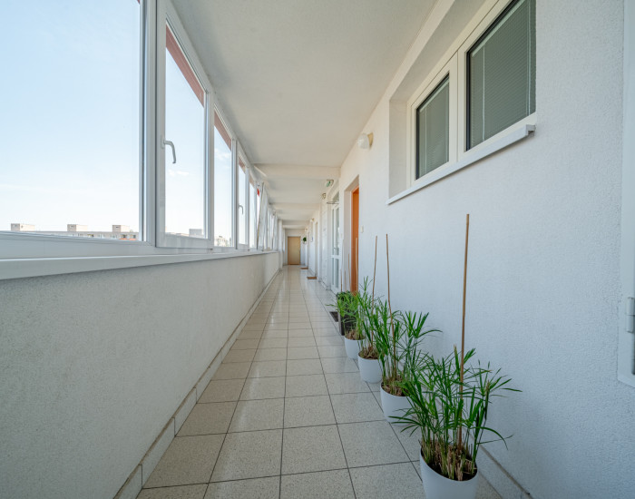 BYT: Podlahová plocha mezanínu je 85 m² a prislúcha k nemu murovaná pivnica (5m2) a priestranný balkón s loggiou o veľkosti 10 m².  Mezanín sa nachádza sa na 6. poschodí presahujúci na 7. poschodie. Bytový dom s výťahom bol skolaudovaný v roku 2005. Mesačné náklady pre jednu osobu predstavujú 110 EUR pre správcu. Orientácia bytu je na JZ (obývacia izba a jedna izba na poschodí) a SZ (ostatné miestnosti).