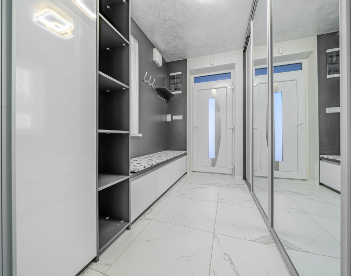 DISPOZÍCIA: Vchod do domu, vstupná chodba (vybavená veľkými šatňíkovími skriňami), z ktorej je prístup na prízemie, kde je kuchyňa so spotrebičmi v nadštandardnej kvalite, obývačka s jedálňou so vstupom na priestrannú terasu, sprchový kút s toaletou, šatník a miestnosť na sušenie prádla. Schody z kvalitného dreva sa dostaneme na vrchné poschodie, kde sa nachádzajú 3 spálne, šatník, kúpeľňa s vaňou a samostatná toaleta.