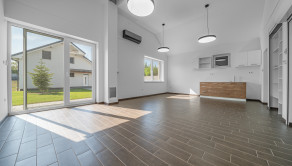 RODINNÝ DOM: Úžitková plocha tohto moderného domu je 100 m2, dom je z kvalitných tehál, má elektrické ovládanie vonkajšieho žalúzia. Súčasťou smart vybavenia je ovládanie cez aplikáciu, a to: alarm, klimatizácia, osvetlenie, závlaha, kúrenie. V dome je predpríprava na krb a je tam vyvýšený strop. Podkrovie je pripravené na rozšírenie domu o ďalšie izby.