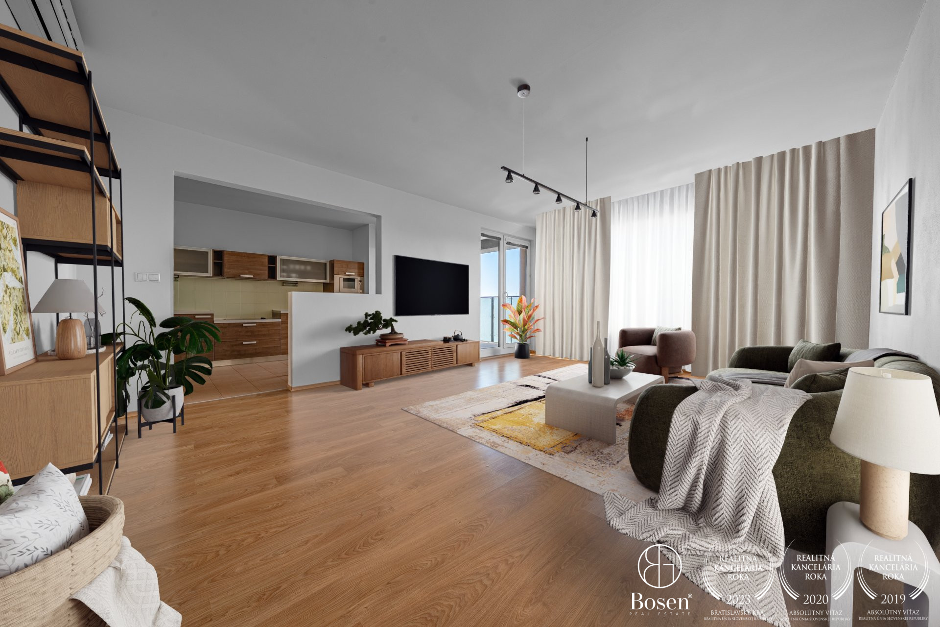 Bosen Group ponúka na predaj skvelý priestranný 3-izbový byt s celkovou plochou 100,1 m² z čoho je 5,2 m2 loggia a 1,89 m2 nachádzajúci sa vo vyhľadávanej lokalite na ulici Trnavská cesta v Bratislave. Byt je zasadený v tichom dvore z oboch strán. Je ideálnou voľbou pre tých, ktorí hľadajú komfortné bývanie v širšom centre Bratislavy s kompletnou vybavenosťou na dosah.
