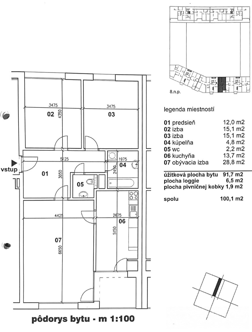 DISPOZÍCIA: chodba, takmer oddelená kuchyňa, kúpeľňa - vaňa s toaletou, kúpelňa - sprchový kút s toaletou, loggia