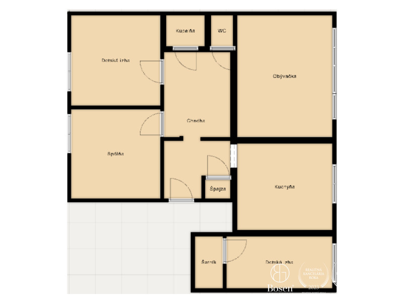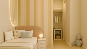 - kuchyňa so vstupom do menšej detskej izby s vlastným šatníkom