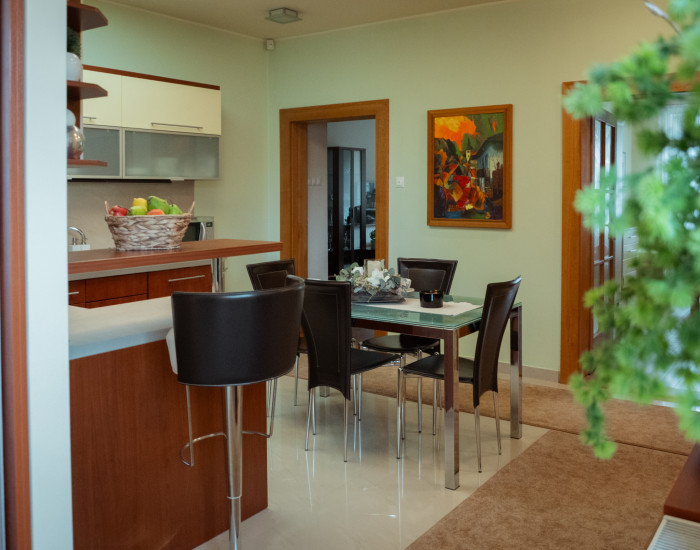Hľadáte výnimočný priestor s atmosférou, ktorý kombinuje mestský komfort, súkromie a veľkorysosť? Tento priestranný 4-izbový byt po kompletnej rekonštrukcii s podlahovou plochou 152 m2 sa nachádza na 2. poschodí tehlového meštianskeho domu v tichej a zelení obkolesenej časti centra. Predáva sa vrátane kompletného zariadenia a vybavenia – stačí sa nasťahovať.