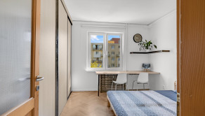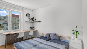 ZARIADNIE: Byt sa prenajíma kompletne zariadený. Spálňa - manželská posteľ s matracmi a vstavanou skriňou, nočným stolíkom. Obývacia izba - sedačka, konferenčný stolík, komoda, TV, jedálenský pult s barovou stoličkou, rozkladací jedálenský stôl so stoličkami. Tretiu izbu, ktorú možno využiť ako pracovňu alebo hosťovskú izbu - rozťahovací gauč, písací stôl so stoličkou. Kúpeľňa - umývadlo, vaňa, zrkadlo, úložný priestor. Samostatná toaleta s technickým priestorom, kde je práčka, sušička a umývačka riadu. Kuchyňa – vybavená spotrebičmi ( chladnička s mrazničkou, mikrovlnkou digestor, plynová varná doska, elektrická rúra).. V byte sa nachádzajú interiérové žalúzie.
