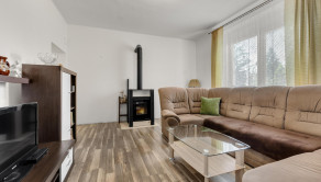 DOM: so zastavanou plochou 115m2 . Na dome bolo zrealizované nové kúrenie, čiastočne bola menená elektrina,nové plastové okná, vchodové dvere, podlahy, dlažby, kompletná rekonštrukcia kúpeľne a wc, prístavba terasy, oplotenie okolo pozemku a nové vybudované chodníky. Vo vjazde je nová plastová vodovodná šachta. Vykurovanie domu je riešené bud plynovým kondenzačným kotlom alebo krbovými kachlami s teplovodným výmenníkom, ktoré kúria priamo do radiátorov. Nachádzajú sa v obývačke.