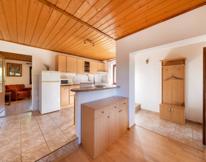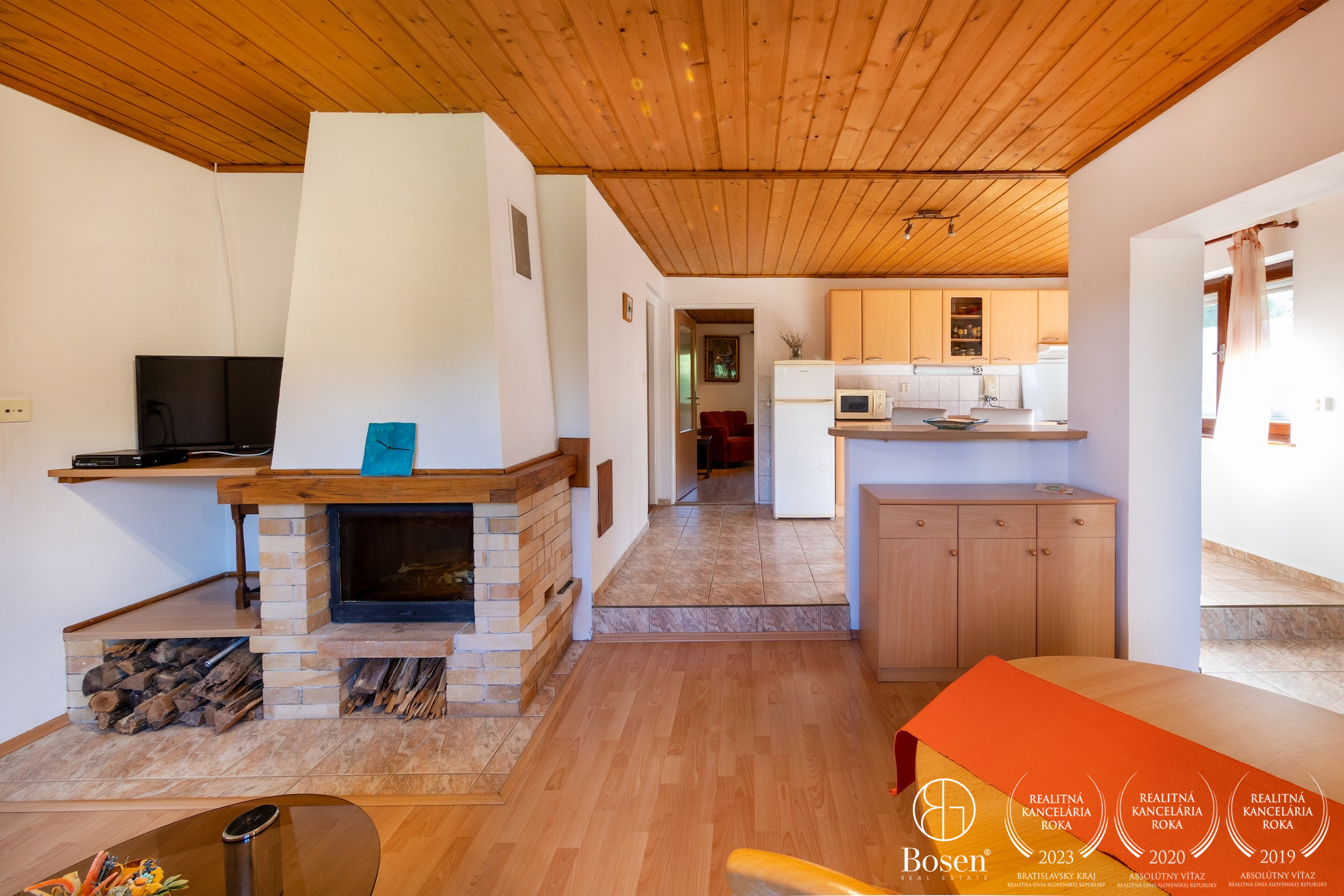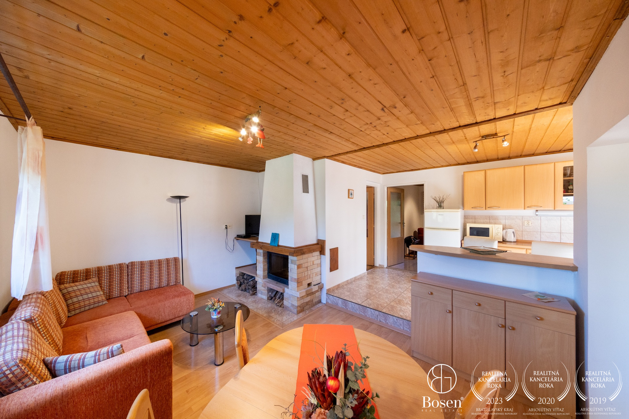DISPOZÍCIA: Rodinný dom disponuje obývačkou s krbom, ktorá je prepojená s kuchyňou, kúpeľnou so sprchovacím kútom a WC, spálňou a komorou s prístupom z vonkajšej strany. Na východnej strane sa nachádza prekrytá terasas výhľadom do záhrady. V predzáhradke sa nachádza druhá teraska ideálna na rannú kávu a vydláždené parkovacie miesto pre dve autá. Pod strechou sa nachádza pochôdzna povala vhodná ako skladovací priestor.