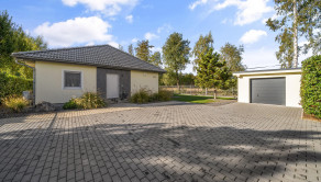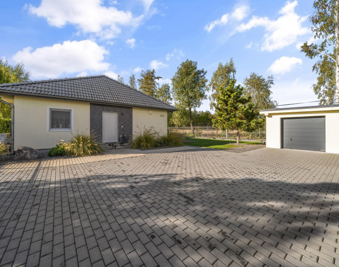 PARKOVANIE: Garáž pre jedno golfové autíčko + 4 parkovacie miesta pred domom za uzavretou bránou.