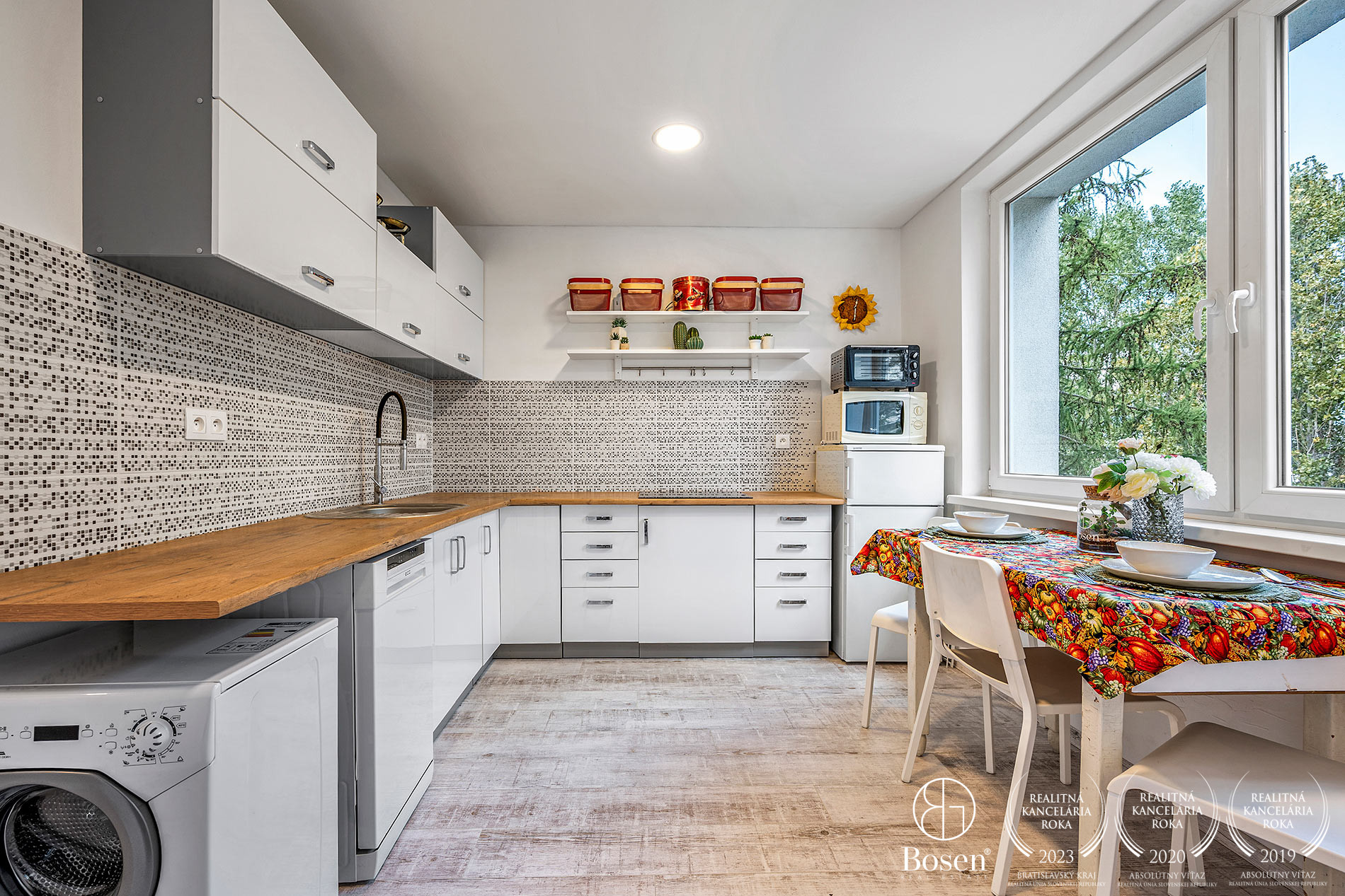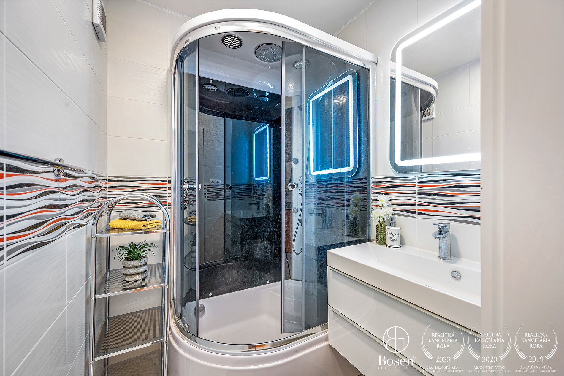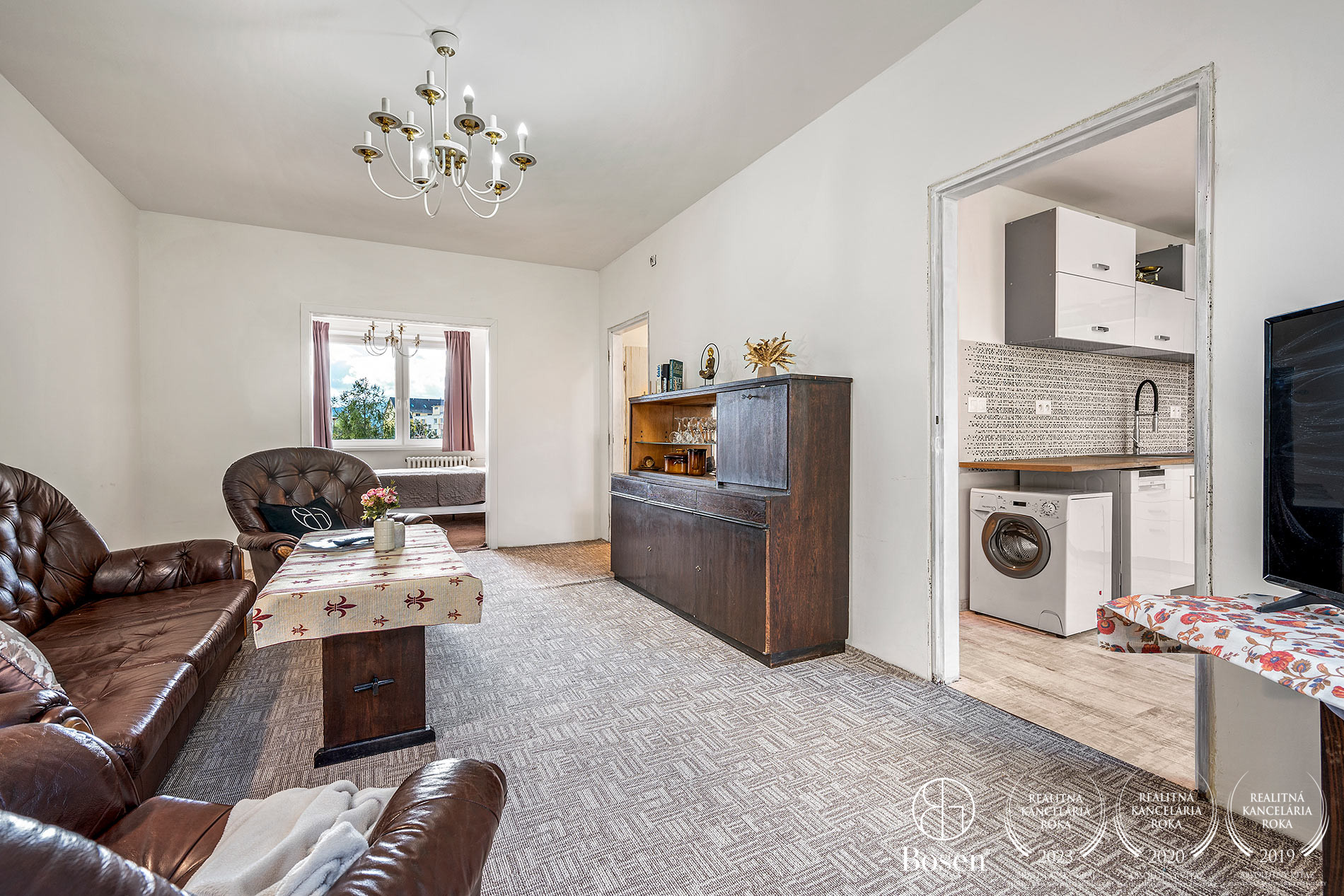 DISPOZÍCIA: Vstupná chodba, kúpeľňa s väčším sprchovým kútom a vaničkou, samostatné WC, obývacia izba, kuchyňa s jedálenským kútom a 3 izby.