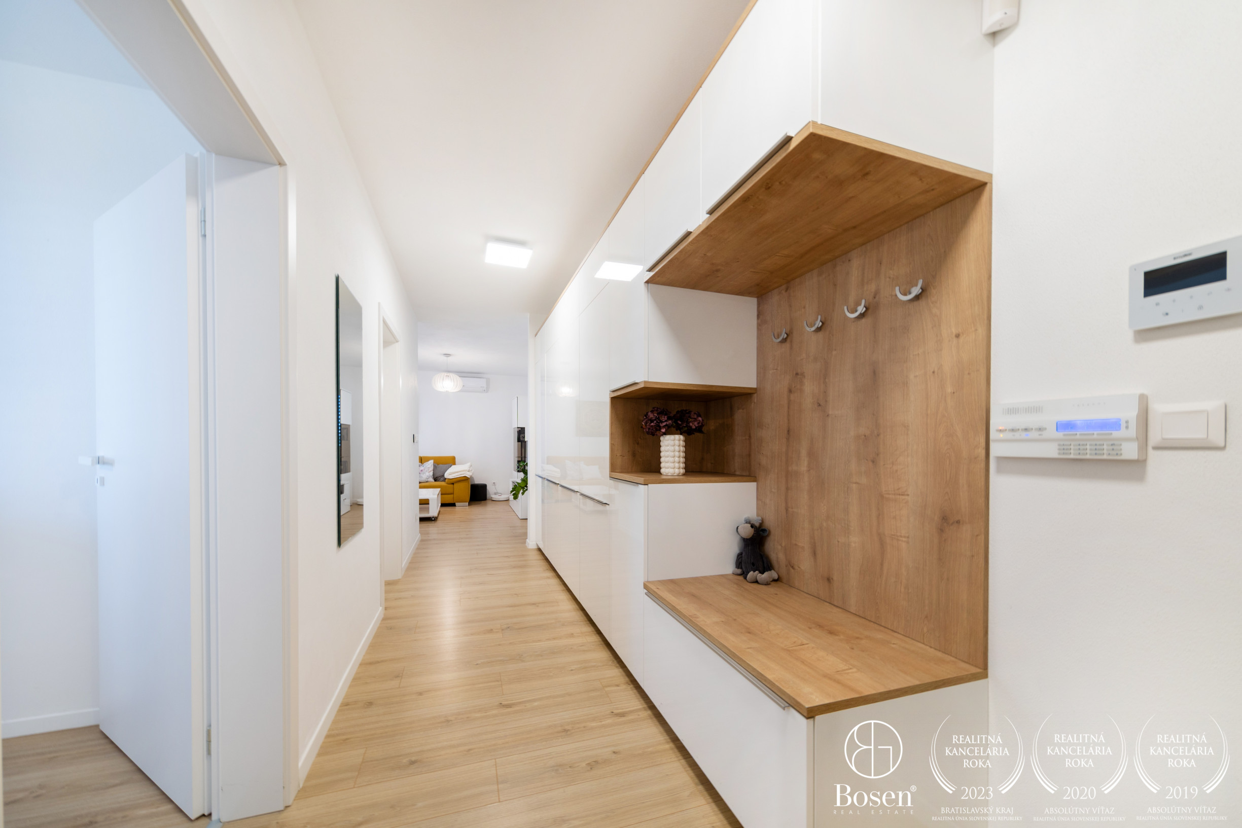 ŠTANDARD BYTU: Kvalitný vstavaný nábytok a kuchynská linka nemeckej značky Nolte. Veľké vstavané skrine na chodbe s kopcom odkladacieho priestoru. Podlahové kúrenie s termostatom. Kvalitné vonkajšie žalúzie značky Salamander. Servisovaná klíma značky LG v obývačke, veľmi málo používaná vďaka JV orientácii bytu. Zabezpečovací systém s pohybovými senzormi v byte značky Easydoor s video vrátnikom, montovaná firmou Venron.