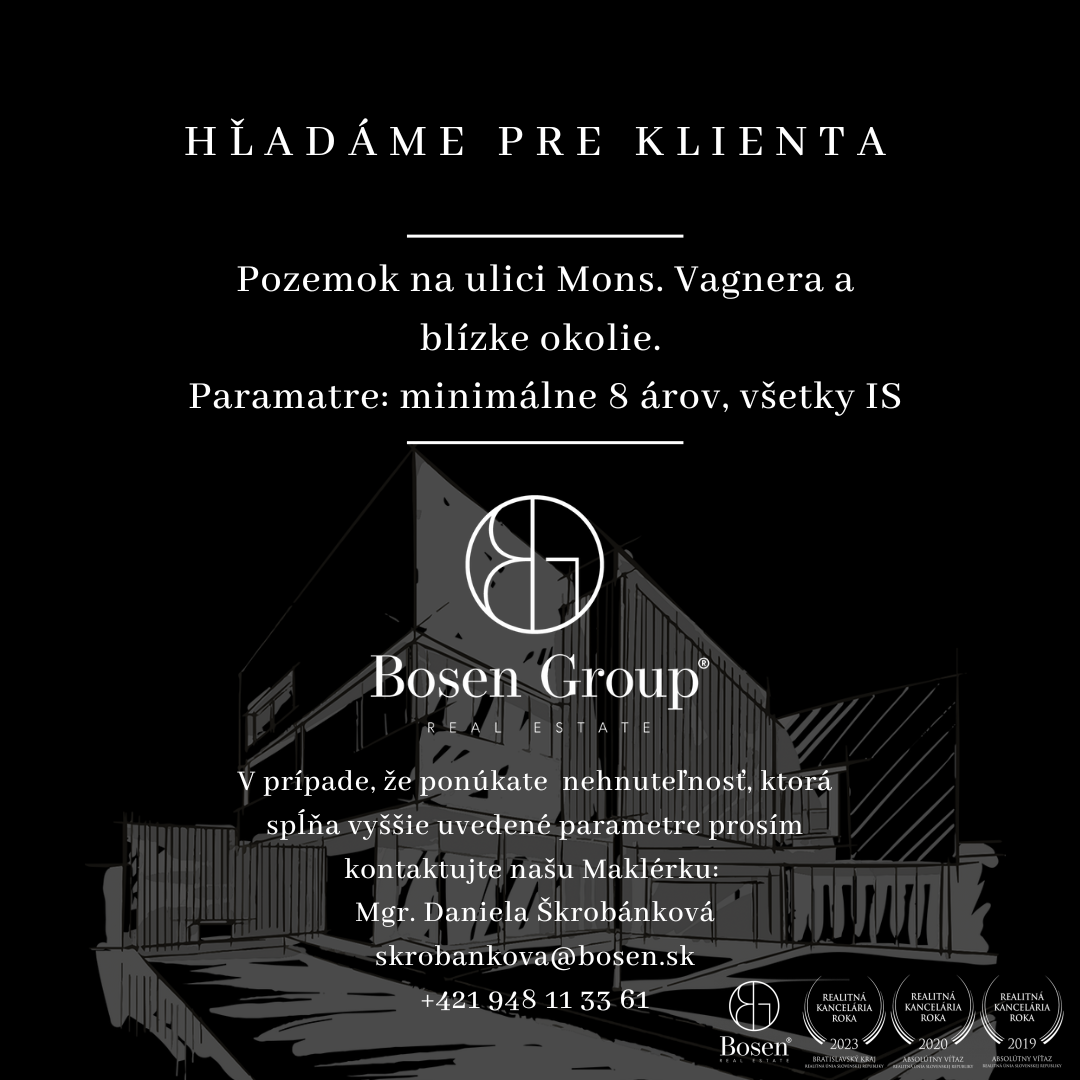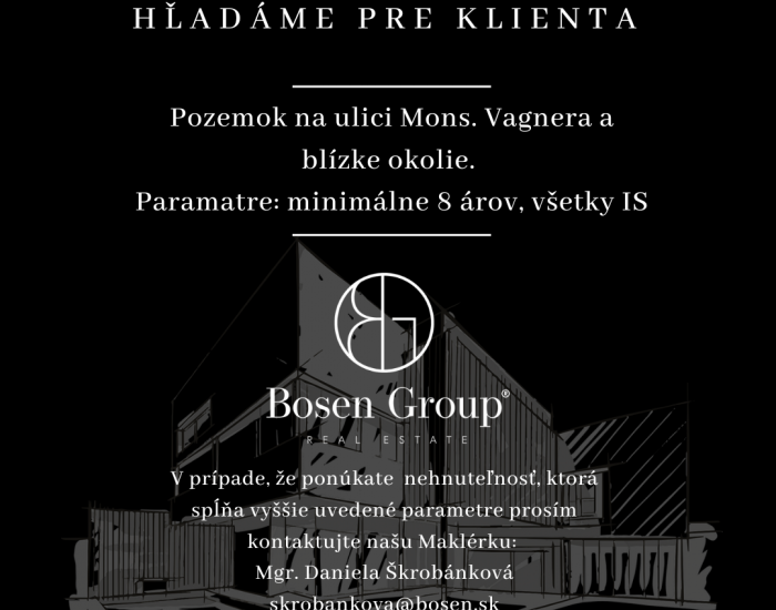 BOSEN NITRA, hľadá pre konkrétneho klienta pozemok na ulici Mons. Vagnera a uliciach v blízkom okolí.