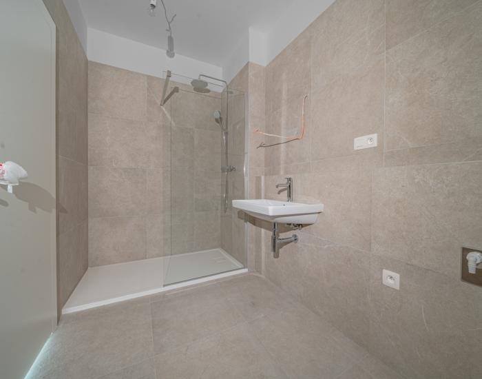 VYBAVENIE: Bytje vybavený bezpečnostnými vchodovými dverami, hliníkovými oknami a balkónovými dverami s izolačným trojsklom a predprípravou na exteriérové žalúzie. Obytné miestnosti majú kvalitné laminátové podlahy, terasy a balkóny sú pokryté keramickou mrazuvzdornou dlažbou a betónovými dlaždicami. Kuchyne a kúpeľne sú vybavené keramickou dlažbou. Objekt má centrálnu kotolňu a podlahové vykurovanie s predprípravou na klimatizáciu. Každý byt má prístup k optickému internetu ako aj k spoločnému exteriérovému bazénu.