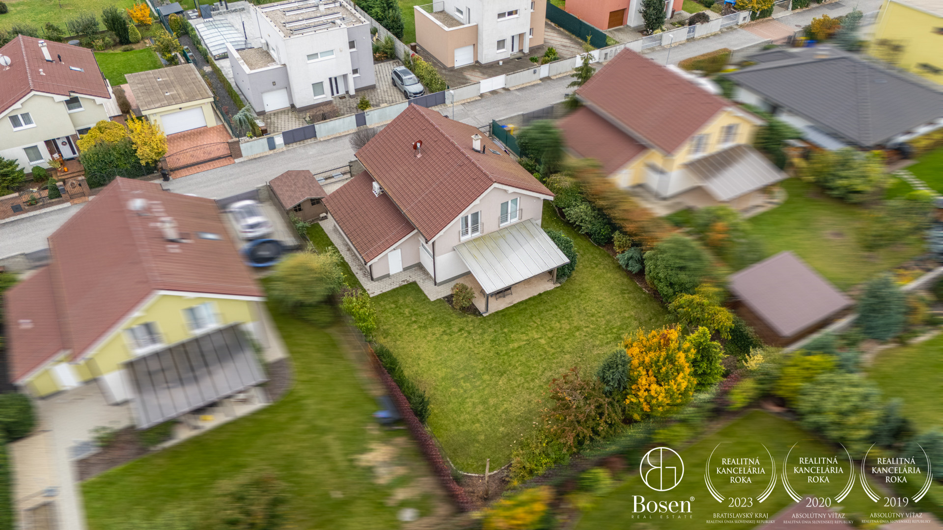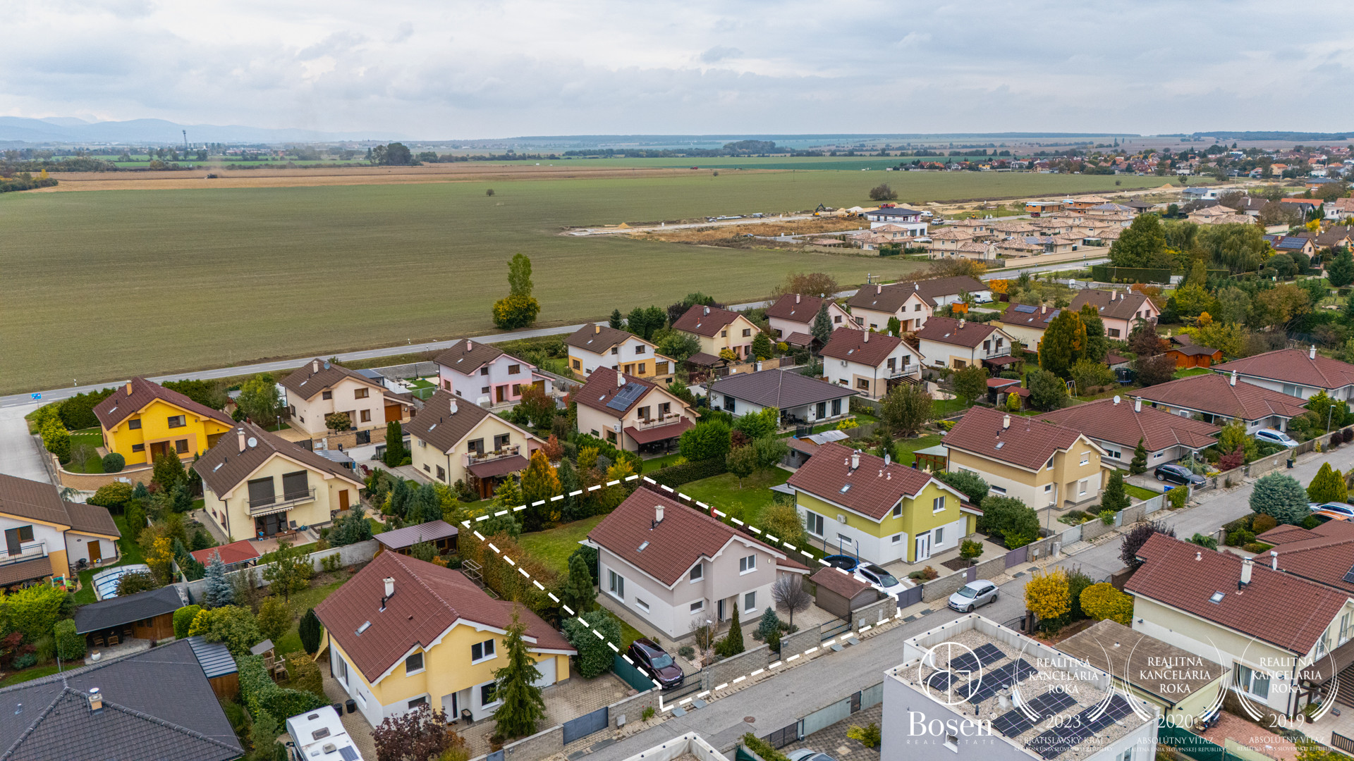 LOKALITA: Dom sa nachádza v nepriechodnej slepej uličke, veľmi tichej a bezpečnej lokalite, vhodnej najmä pre deti. Prichádzajúce autá sú len majitelia domov, prípadne návšteva, čo dáva priestor deťom hrať sa na ulici. Táto vyhľadávaná lokalita je vďaka diaľničnému obchvatu vzdialená len približne 10-12 min autom, k známemu obchodnému centru AVION. Lokalita poskytuje príjemné bývanie a výbornú občiansku vybavenosť. Nájdete tu obchodné centrum Klokan vzdialené asi 3 minúty.