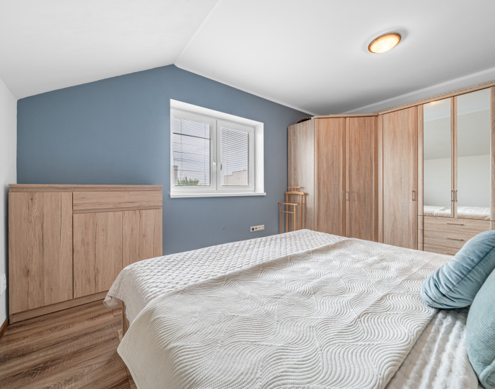 2NP: chodba, kúpeľňa s vaňou, WC a dvoma umývadlami, hlavná spálňa s klimatizáciou, dve samostatné nepriechodné izby vhodné ako dve detské izby, technická miestnosť s plynovým kotlom, práčkou + sušičkou, výstup na povalu, kde je odkladací priestor.