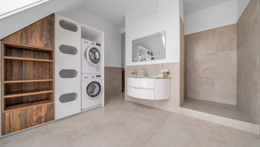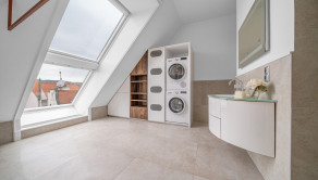 DISPOZÍCIA: Vstup do paláca vedie z Gorkého ulice cez recepciu (24/7) a nádhernú záhradu plnú zelene. Do samotného bytu vedie výťah. Po vstupe Vás na prvom z troch podlaží čaká vstupná hala, priestranná obývacia izba s jedálňou a východom na balkón, plne vybavená kuchyňa a toaleta. Na druhom podlaží je súkromná čast, kde sa nachádzajú dve spálne a dve kúpeľne. Jedna kúpeľňa so sprchovým kútom, wc a samostatne stojacou vaňou prislúcha k spálni, druhá kúpeľňa s práčkou, susičkou, sprchovým kútom, wc a vaňou je samostatná. Na poslednom podlaží sa nachádza zimná záhrada s priestrannou terasou a nádherným výhľadom na historické centrum a Bratislavský hrad. Jednotlivé poschodia sú prepojené okrem schodiska aj so súkromným vnútrobytovým výťahom.