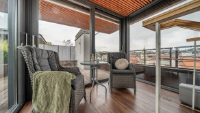 BYT: Trojpodlažný mezonet sa rozprestiera na 5. - 7. poschodí, jeho výmera je 192,65 m² z toho zimná záhrada 12,34 m². Prislúcha k nemu balkón o výmere 13,92 m² a terasa 75,61 m². Izby sú orientované na juhovýchod a severozápad.
