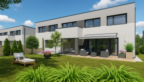 DISPOZÍCIA: Dom pozostáva zo vstupnej chodby, zádveria, technickej miestnosti, samostatného WC, obývačky spojenej s kuchyňou a jedálňou, spálňa s výstupom na terasu, šatníkom a vlastnou kúpelňou. Na druhom poschodí sa nachádzajú tri samostatné izby, kúpeľňa spojená s WC a dva balkóny.