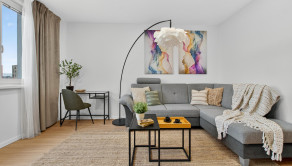 ZARIADENIE: Byt sa predáva kompletne zariadený a je pripravený na okamžité nasťahovanie. Spálňa disponuje manželskou posteľou, nočnými stolíkmi a skriňou. Obývacia izba je vybavená pohodlnou sedačkou, konferenčným stolíkom, TV komodou, televízorom a stolíkom s kreslom. Jedna z nepriechodných izieb slúži ako kancelária s policovou skriňou, stolíkom a kreslom, tretia samostatná izba obsahuje vstavanú skriňu, stôl s kreslom a posteľ. Kuchyňa je vybavená jedálenským stolom a kuchynskou linkou robenou na mieru so vstavanými spotrebičmi. Kúpeľňa je vybavená vaňou a sanitou, toaleta je oddelená a pri kúpeľni sa nachádza samostatná vstavaná skriňa pripravená na práčku a sušičku.