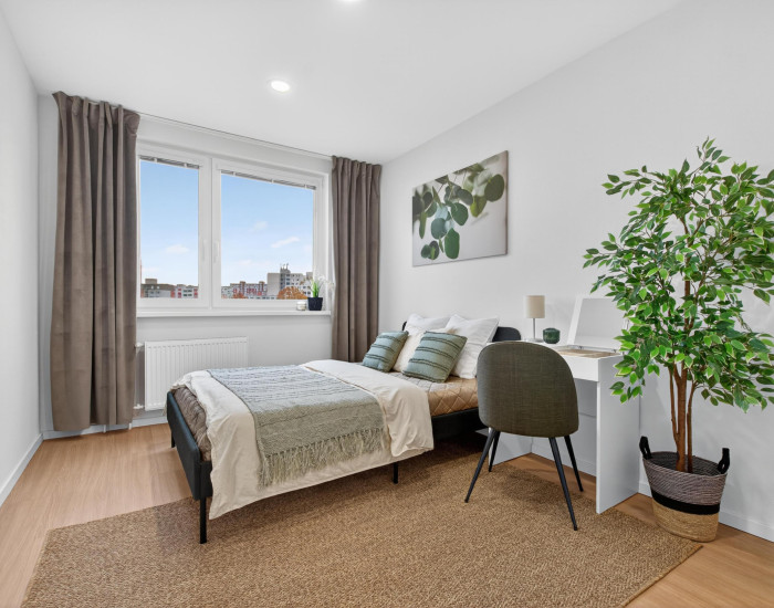 BYT: Byt má rozlohu 87,2 m², z toho 3,5m2 balkón a 1,1 m² tvorí pivničná kobka. Nachádza sa na 5. poschodí z 8 v zateplenom bytovom dome s novým výťahom. Byt prešiel kompletnou rekonštrukciou v roku 2025, vrátane výmeny elektrických rozvodov, okien a podláh. Je orientovaný na severovýchod a juhozápad, čo zabezpečuje dostatok denného svetla počas celého dňa.