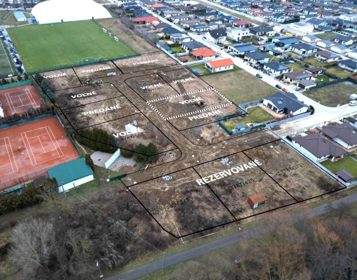 INFRAŠTRUKTÚRA: Inžinierske siete sa nachádzajú v blízkosti riešeného územia. Realizácia infraštruktúry inžinierskych sietí, vrátane domových prípojok, komunikácie, chodníkov (bez finálnej úpravy) je na pozemkoch plánovaná a spustená s predpokladaným dokončením do konca roka 2025. Má právoplatné stavebné povolenie.