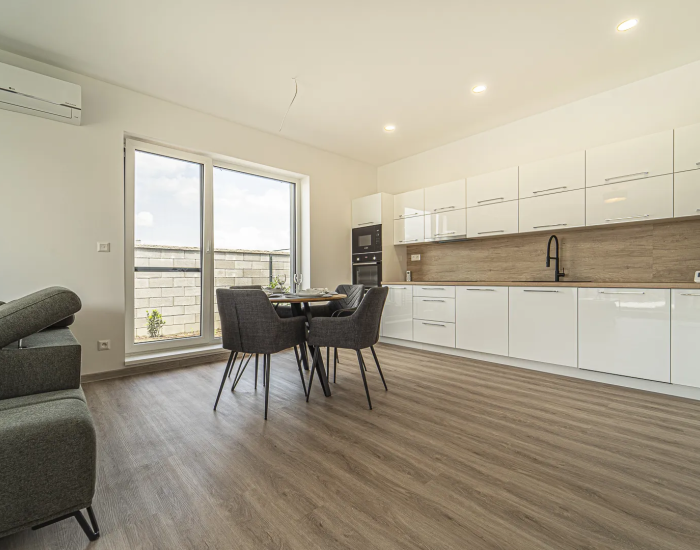- priestranná obývacia izba s kuchyňou a jedálňou s výstupom na terasu