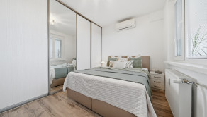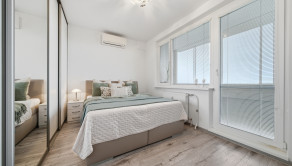 BYT: Byt sa nachádza na 8/12 poschodí bytového domu. Podlahová plocha bytu je 48 m2 z čoho plocha balkóna je 5 m2 a plocha pivnice 1,5 m2. Orientácia bytu je na východ s výhľadom na jazero. Byt je zariadený v jemných svetlých tónoch a disponuje klimatizáciou. Byt prešiel kompletnou rekonštrukciou, nová elektrika, nábytok na mieru, plastové okná, zasklenie lodžie.