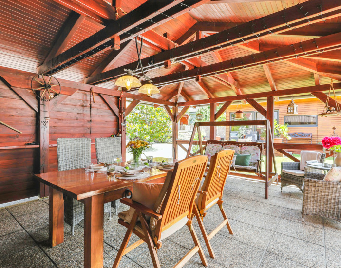 POZEMOK: Rodinný dom je postavený na pozemku o celkovej výmere 679 m2. Zastavaná plocha domu je 248,58 m2. Na pozemku za rodinným domom sa nachádza klimatizovaný letný domček ( 37,4 m2 ), ktorý je kompletne zariadený (kuchyňa, chladiaci box, obývačka, kúpeľňa) a prestrešený altánok ( 31 m2 ) s grilom. Orientácia záhrady je SZJ. Oplotenie rodinného domu - betónový plot. K rodinnému domu vedie príjazdová cesta zo zámkovej dlažby.