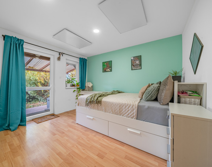Zariadenie: Dom sa predáva so zariadením - toto zahŕňa kuchynskú linku so spotrebičmi, nábytok ako skrine, postele, kuchynský stôl, stoličky, sedacia súprava, policové skrine. Kúrenie je zabezpečené stropnými infrapanelmi.