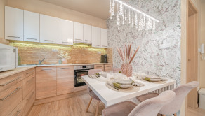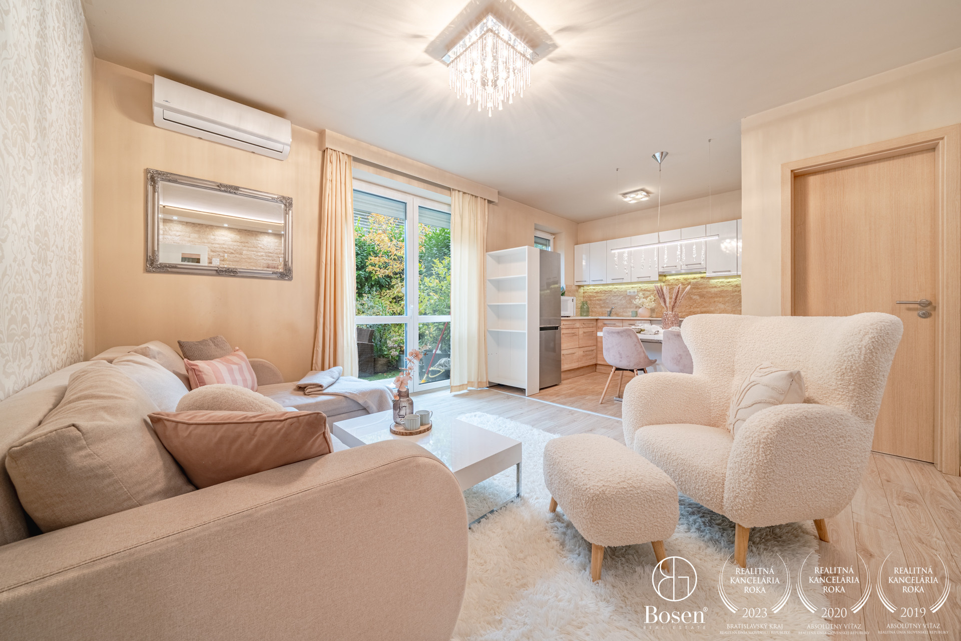 DISPOZÍCIA: byt sa nachádza na prízemí 2-podlažného bytového domu s počtom 8 bytov, v uzavretom areáli s vlastným parkovacím miestom. Predzáhradku lemuje vysoká zeleň, čo dodáva bývaniu v tejto štvrti úplné súkromie – ideálne pre turistov či biznis klientelu. V byte je klimatizácia.