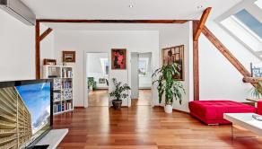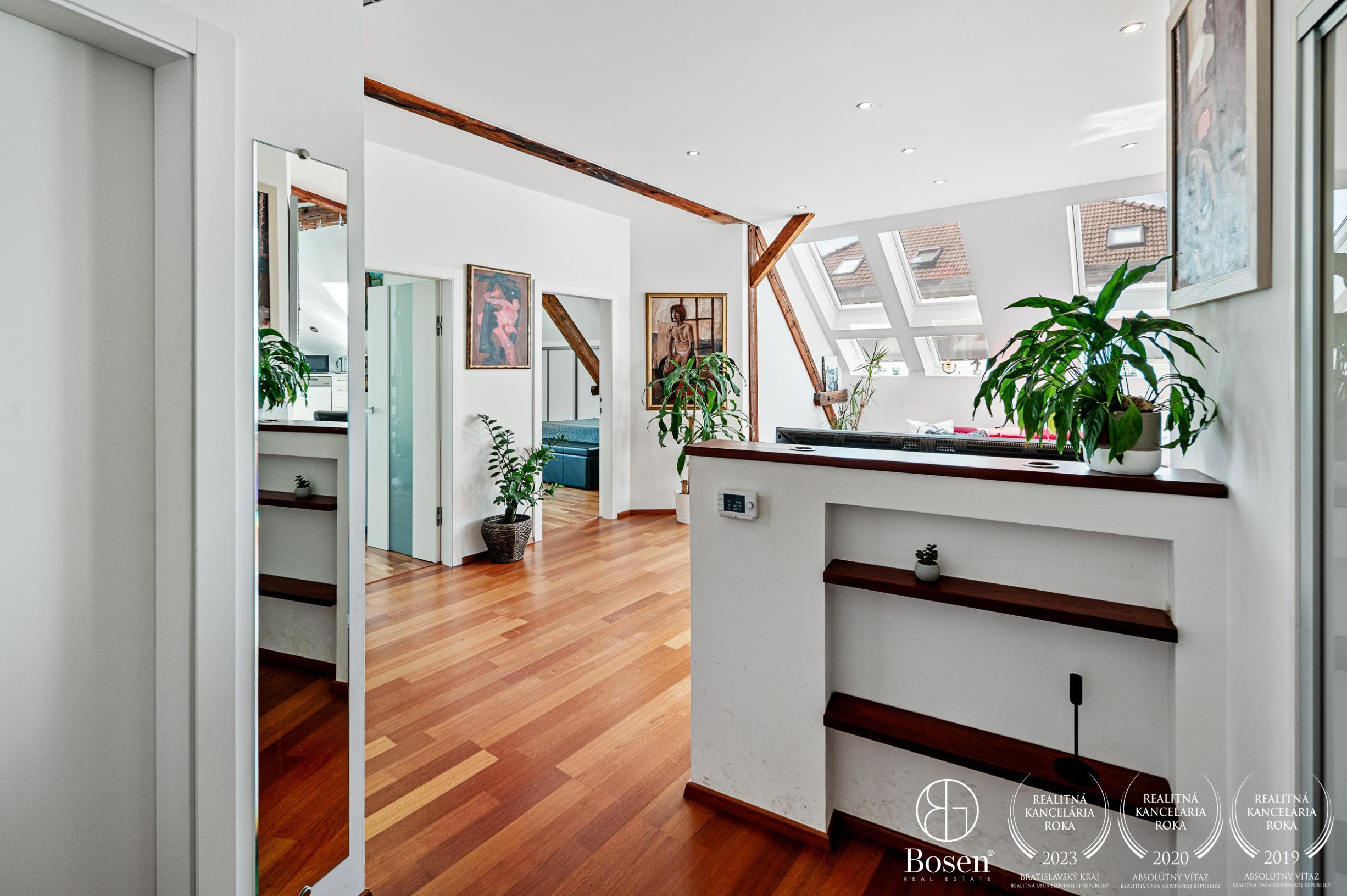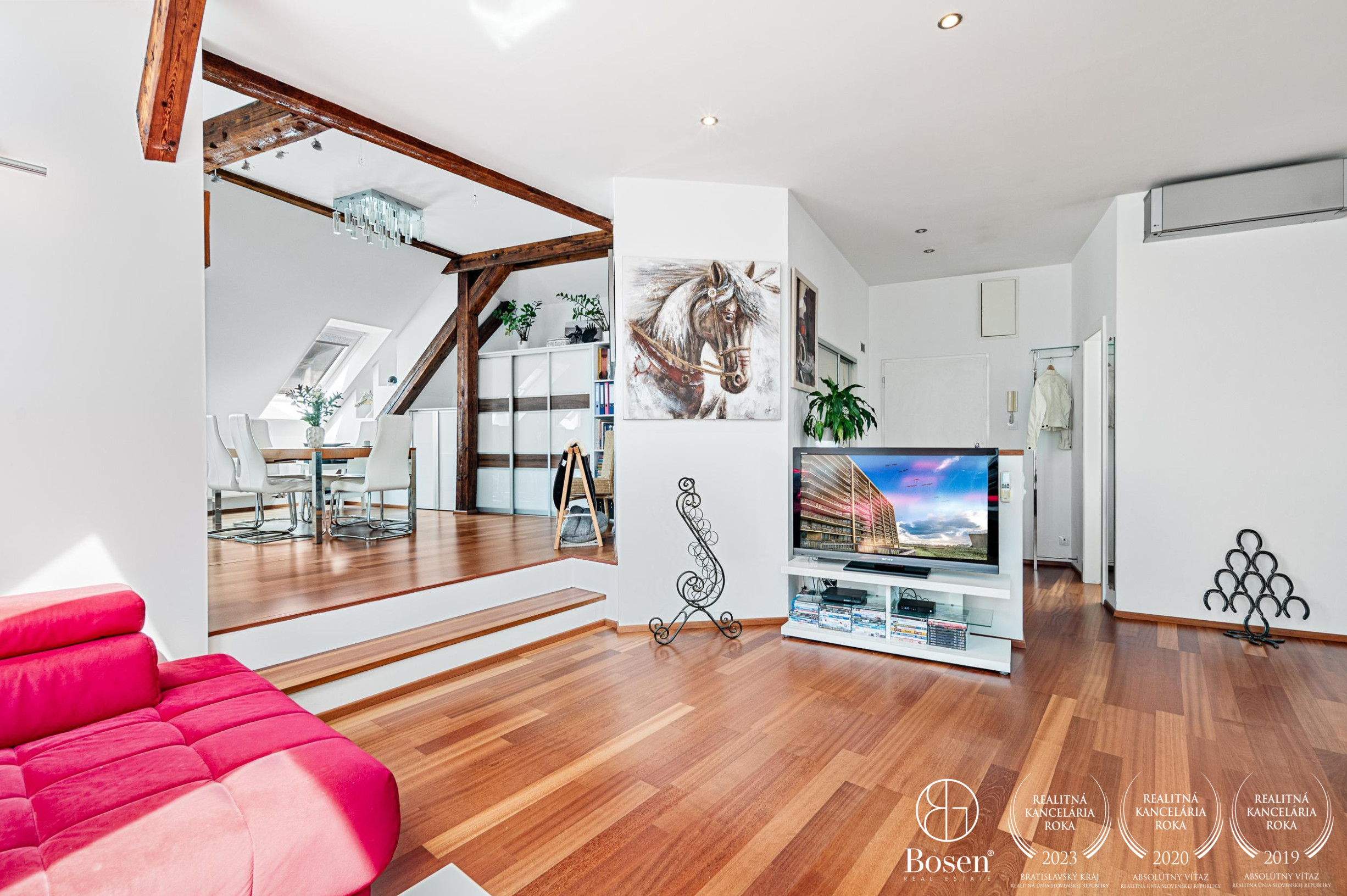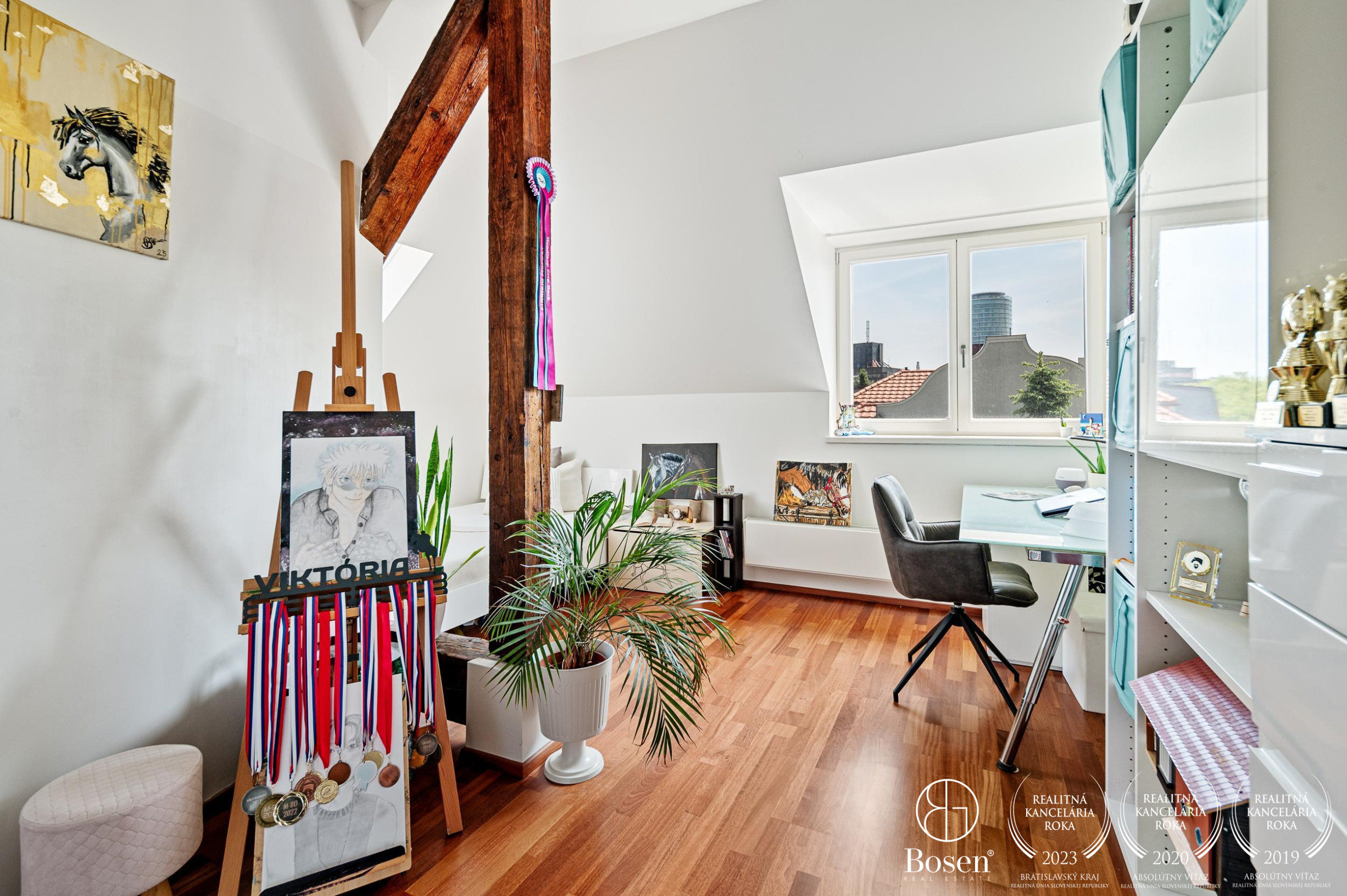 Bosen Group is offering for sale a spacious and bright 3-room apartment with an artistic attic character in a prestigious location—Čajkovského Street, Bratislava 1, Old Town.