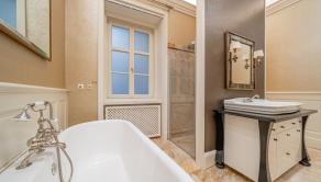 DISPOZÍCIA: Vstup do paláca vedie z Gorkého ulice cez recepciu (24/7) a nádhernú záhradu. Byt pozostáva zo vstupnej haly, obývacej izby, kuchyne s jedálňou, šatníku, štyroch kúpeľní a štyroch spální.