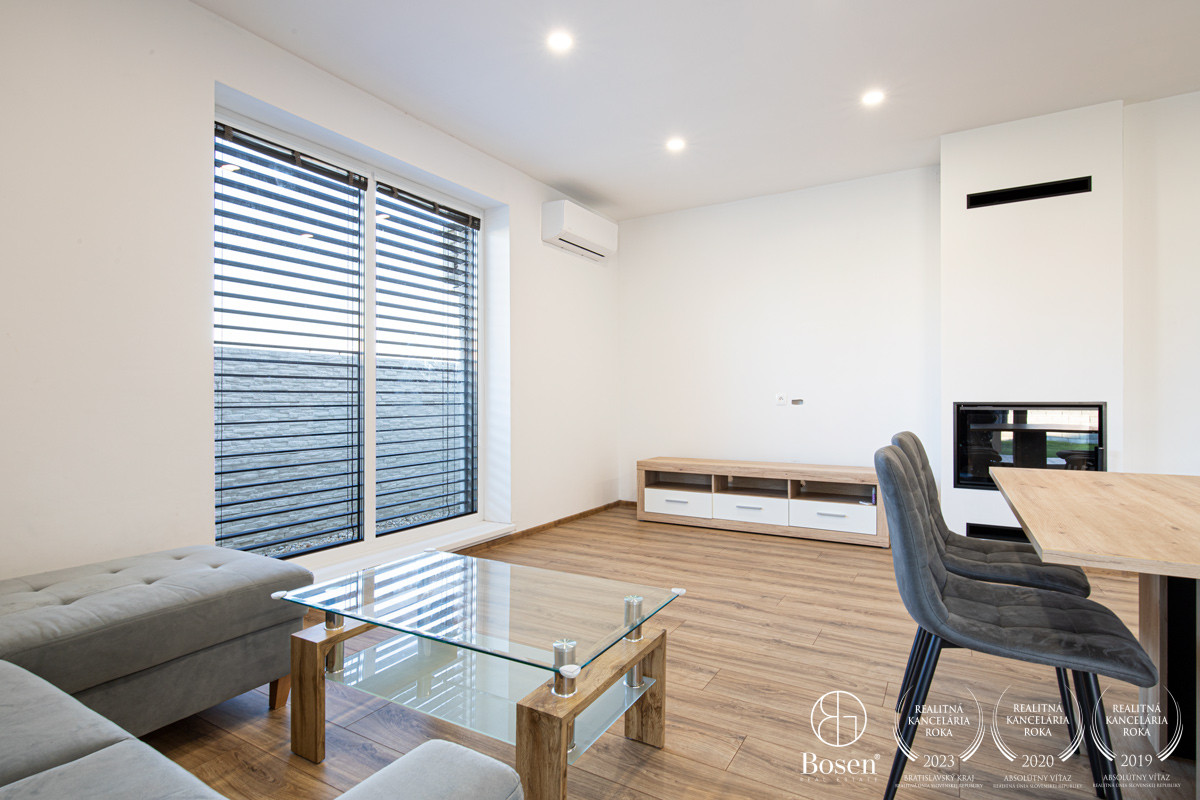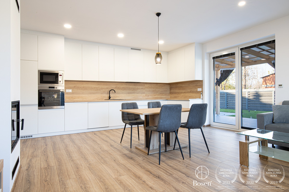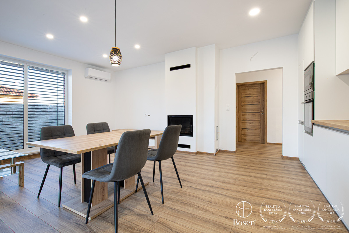 Predstavujeme vám nový, kompletne zariadený 3-izbový byt v rodinnom dome, ktorý sa nachádza v tichom a bezpečnom uzavretom areáli v obci Veľké Dvorníky.