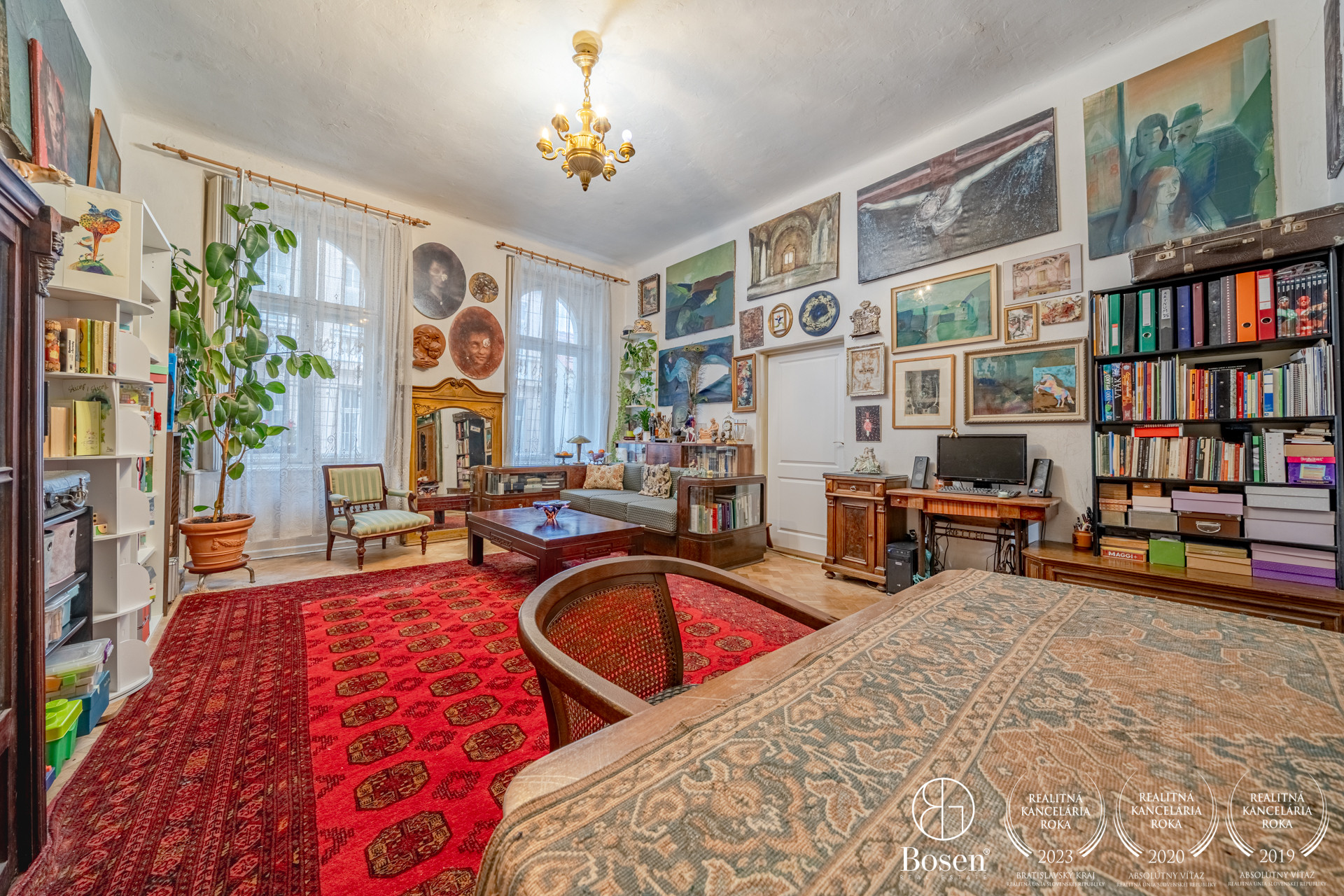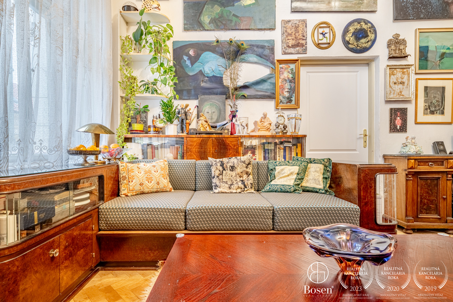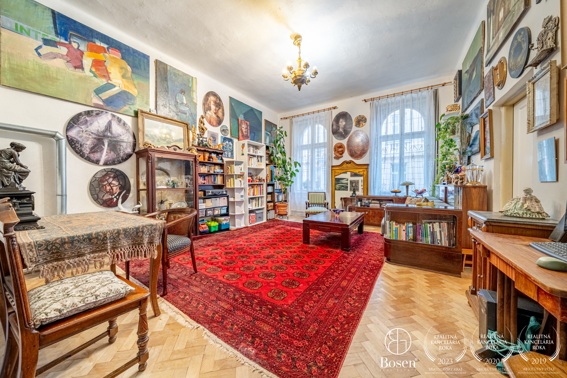 ZARIADENIE: Byt sa predáva čiastočne zariadený. Sú v ňom bezpečnostné vstupné dvere, pôvodné drevené parkety a okná, vnútorné drevené okenice, kompletná sanita aj interiérové dvere.