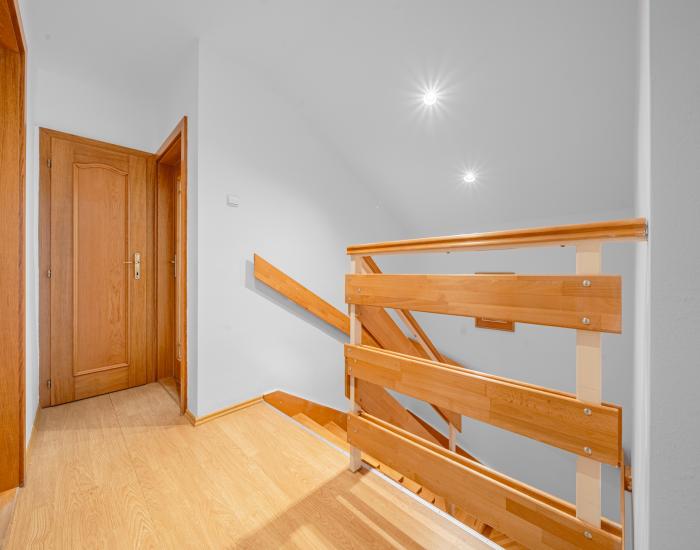 2. nadzemné podlažie (2.NP) - veľká hlavná izba orientovaná do ulice, druhá priestranná izba ideálna ako pracovňa - s výstupom na balkón, tretia a štvrtá izba orientované do záhrady a chodba so schodiskom presvetleným cez stropné svetlá