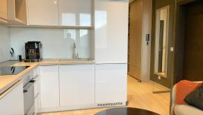 ZARIADENIE: Byt sa prenajíma kompletne zariadený. Kuchynská linka na mieru je vybavená vstavanou elektrickou varnou doskou, rúrou, digestorom, chladničkou s mrazničkou.