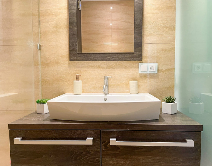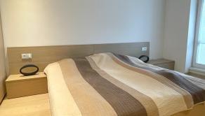 V obývacej časti bytu sa nachádza gauč, konferenčný stolík. Spálňa disponuje priestrannou vstavanou skriňou, manželskou posteľou a pracovným stolom.