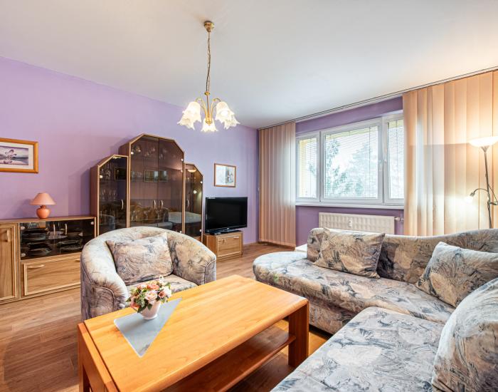DISPOZÍCIA: Dispozične je byt veľmi dobre riešený – pozostáva zo vstupnej chodby, kúpeľne s vaňou, samostatného WC, priestrannej obývacej izby, spálne a kuchyne.