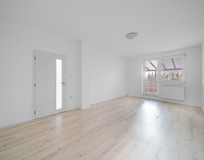 DISPOZÍCIA: priestranná vstupná chodba (5,27 m2), samostatné WC, kúpeľňa s vaňou, detská izba (11,79 m2), obývacia izba spojená s kuchyňou (34,12 m2) s výstupom na terasu, spálňa (20,24 m2) s výstupom na terasu