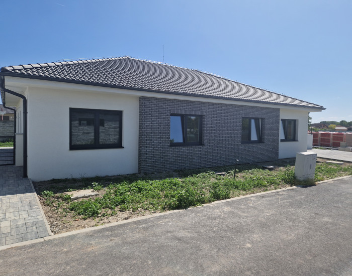 - je z brúsenej tehly (30cm), zateplenie 15cm polystyrén, 6-komorové plastové okná s izolačným troj-sklom, zvonku antracit zvnútra biele, strešná krytina BRAMAC, sadrokartónové stropy, elektrické podlahové kúrenie s reguláciou teploty - termostaty v každej izbe. Ohrev vody 120L bojlerom.