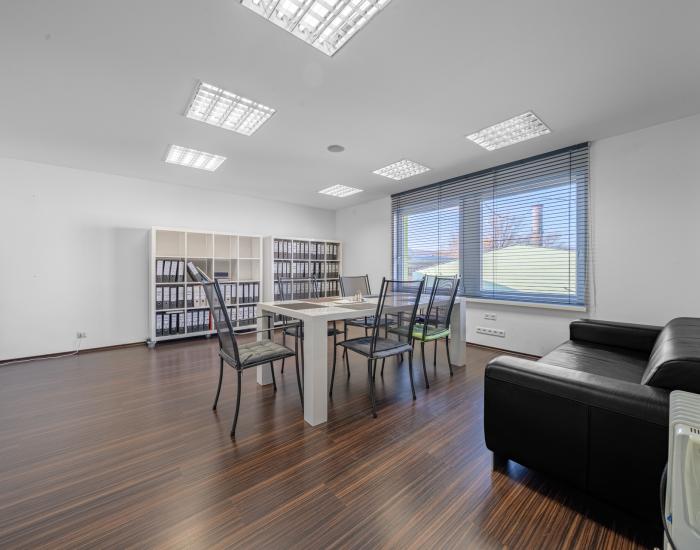 A) Administratívna budova - Pozostáva z jednej nadstavenej rekonštruovanej budovy (penosilikát) a druhej novopostavenej prístavby (telha). Skladá sa z priestorov showroomu a administratívneho zázemia tvoreného 2 kanceláriami a jednej priestrannej kuchynky.  Na každom podlaží sú samostatné toalety. Budova má polyfunkčné využitie či už na showroom, kancelárie, coworking alebo štúdio.