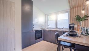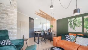 DOM: Zastavaná plocha domu je 90,27 m2, úžitková plocha domu je 90,27 m2 a ponúka 4 izby z toho 3 spálne. Skladba konštrukcie montovaného domu tvorí KVH hranol, tepelná izolácia Isover 150mm a doska Fermacell, ktorá je ešte po vonkajšom obvode domu zateplená 15 cm polystyrénom Austrotherm. Vykurovanie domu zabezpečuje elektrické podlahové kúrenie s termostatom v každej izbe sa o čerstvý vzduch postará rekuperácia. Dom má energetický certifikát A0. V prípade záujmu je možné dorobiť aj krbové kachle.