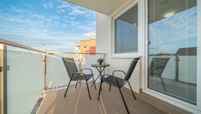 BYT: Byt sa nachádza na 2. poschodí bytového domu s výťahom, je moderne a kompletne zariadený. Rozloha bytu je 60 m2 a balkón má rozlohu 5 m2. K bytu prislúcha pivničná kobka nachádzajúca sa priamo na poschodí. Byt má elektrické podlahové kúrenie a vlastný kotol na ohrev vody.