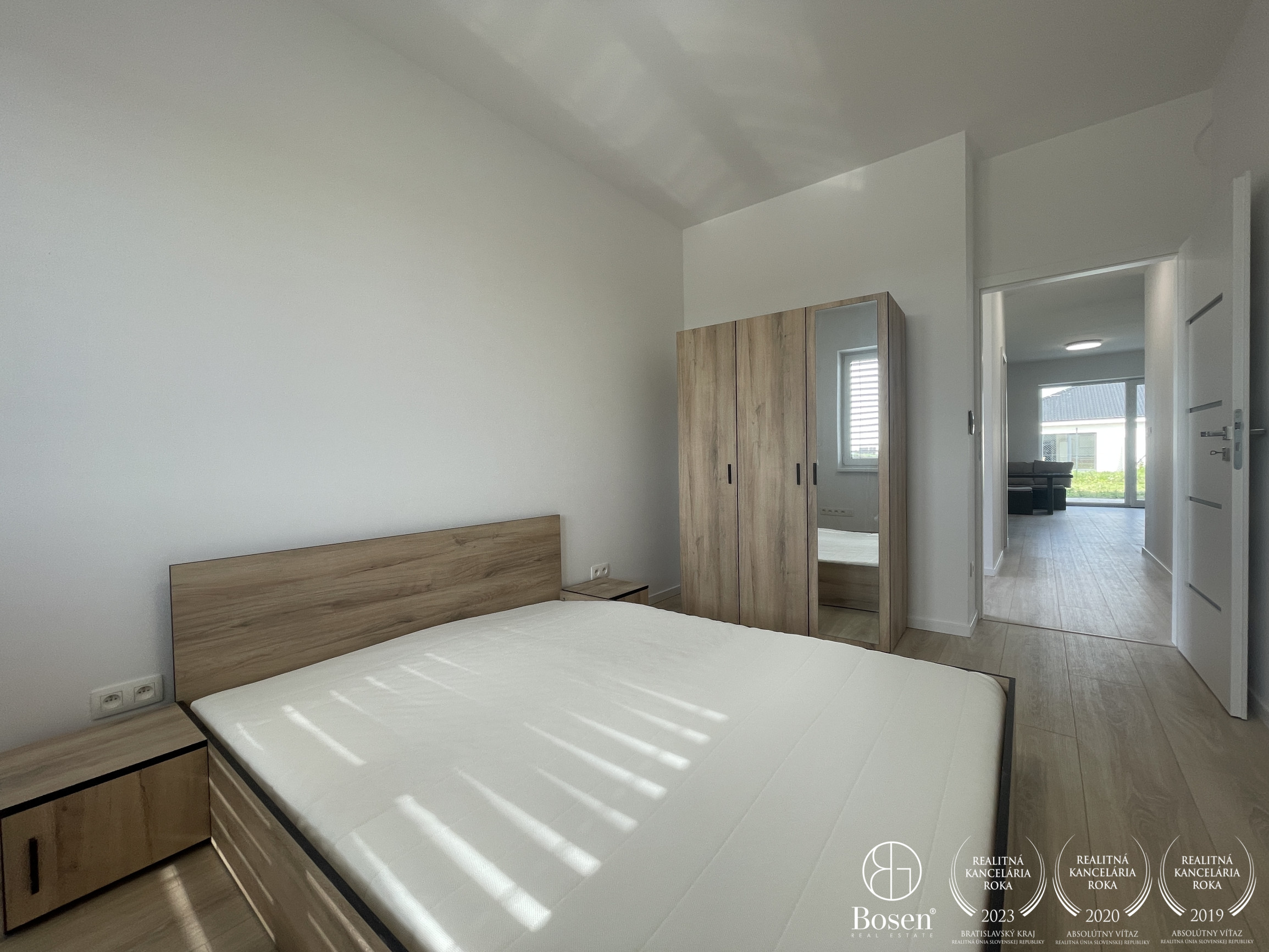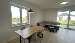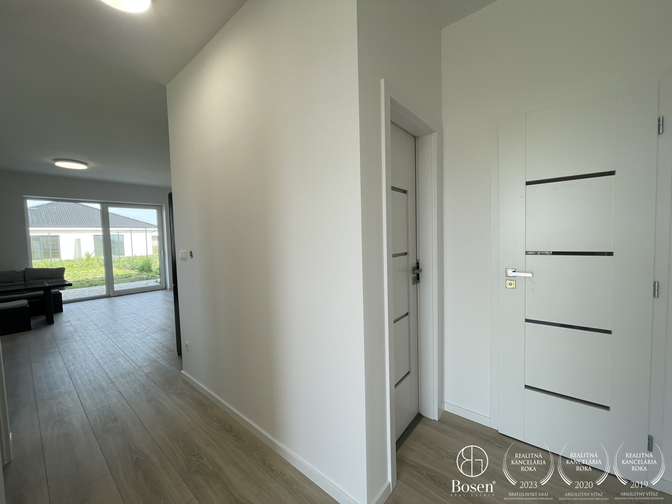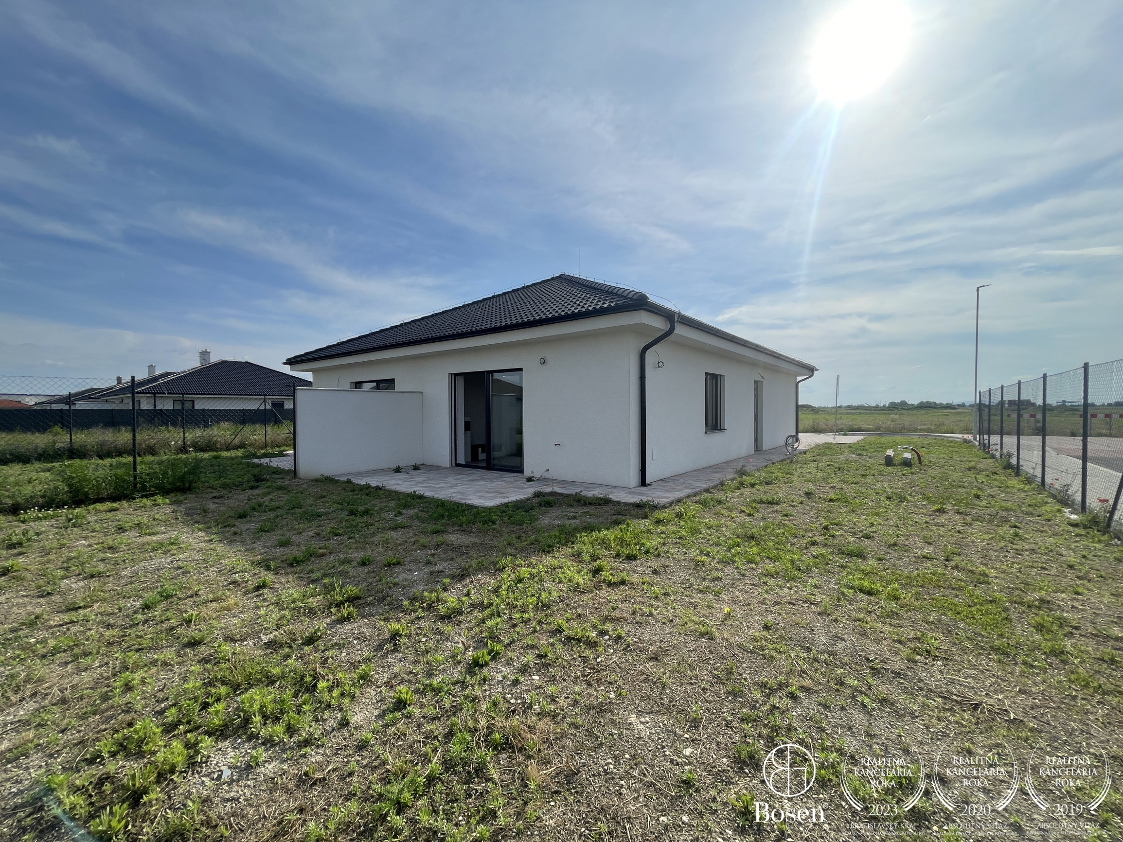DISPOZÍCIA: Vstupná predsieň, obývacia izba spojená s kuchyňou a východom na terasu a záhradu, technická miestnosť s úložným priestorom, dve samostatné izby, wc, kúpeľňa