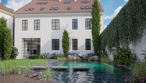 Rezidencia poskytuje reprezentatívne spoločné priestory s panoramatickým výťahom, tiché relaxačné zóny, spoločenské sedenie a harmonické prepojenie interiéru s upraveným vonkajším prostredím s jedinečným kúpacím jazierkom. Ideálne prostredie pre klientov, ktorí vyhľadávajú eleganciu, súkromie a unikátny charakter bývania.