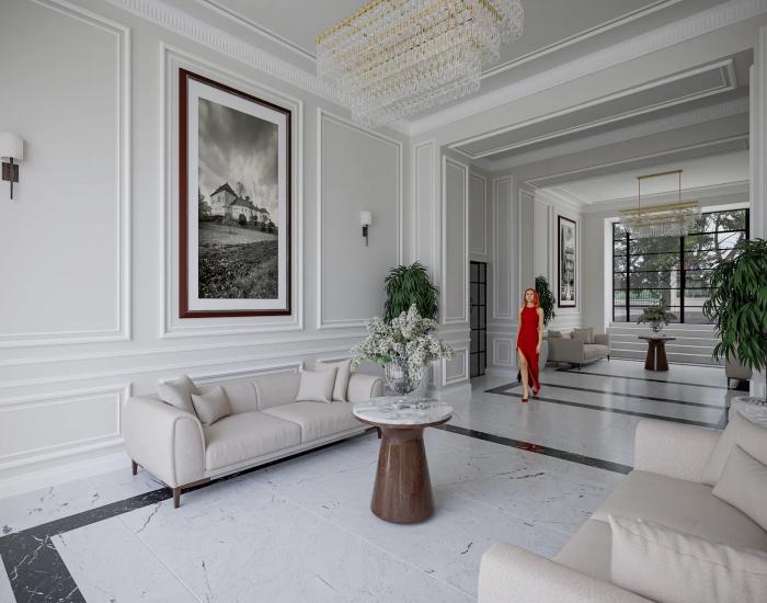 Rezidencia poskytuje reprezentatívne spoločné priestory s panoramatickým výťahom, tiché relaxačné zóny, spoločenské sedenie a harmonické prepojenie interiéru s upraveným vonkajším prostredím s jedinečným kúpacím jazierkom. Ideálne prostredie pre klientov, ktorí vyhľadávajú eleganciu, súkromie a unikátny charakter bývania.