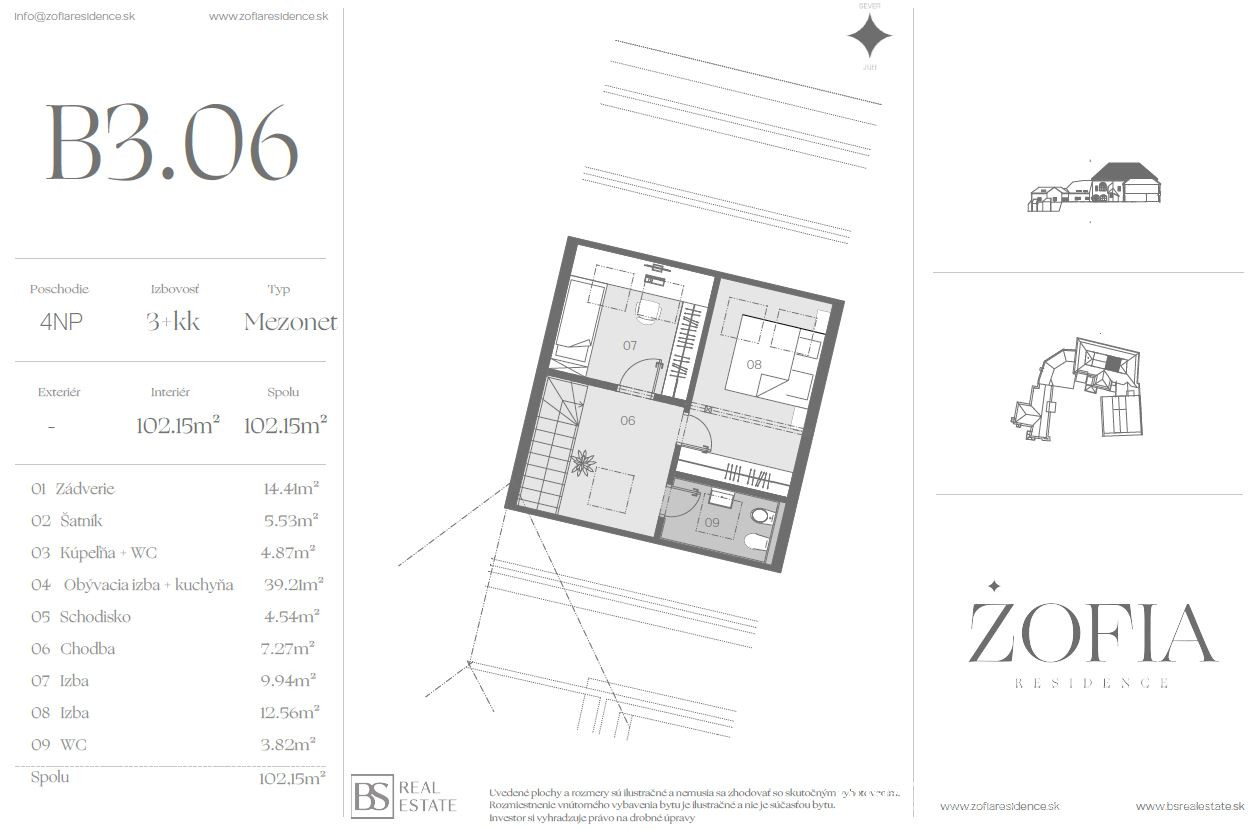 Bosen Group ponúka exkluzívne na predaj jedinečný 3 izbový mezonetový byt B3.06 v prestížnom projekte Žofia Residence, ktorý vznikol kompletnou rekonštrukciou historického kaštieľa sv. Žofie v Ružomberku. Projekt spája noblesu renesančnej architektúry s moderným komfortom bývania a ponúka atmosféru, ktorá je na trhu výnimočná a mimoriadne žiadaná.