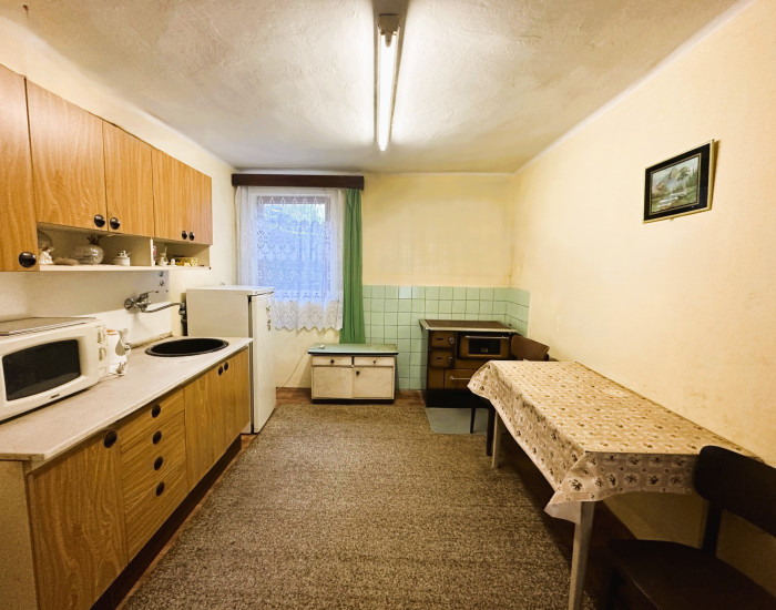 DISPOZÍCIA: Vstup do domu je z dvora chodbou. Z chodby sú vstupy do dvoch izieb a kuchyne, Z nej je vstup do spálne, komory a kúpeľne so sprchovým kútom. Z dvora je samostatný vstup do druhej kuchyne z ktorej je vstup do izby.