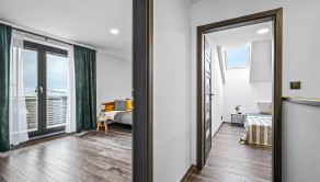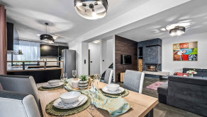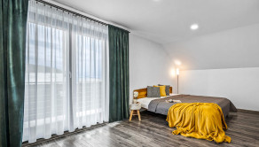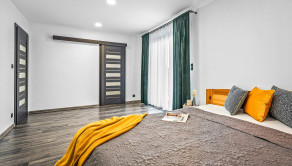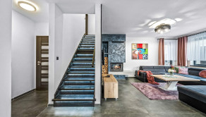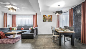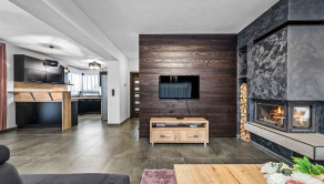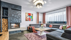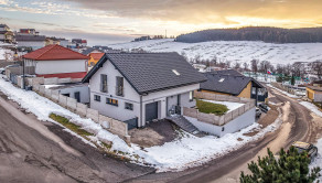 Rodinný dom: je postavený v nadčasovom štýle, disponuje krbom na tuhé palivo, dvoma garážami a 4 izbami, ktoré poskytujú komfortné bývanie aj pre väčšiu rodinu. Denná časť je výborne prepojená – priestranná obývacia izba, jedáleň a kuchyňa tvoria harmonický a svetlý priestor s výstupom na pozemok.