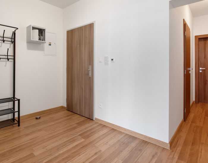 ZARIADENIE: Byt sa prenajíma ZARIADENÝ. Jedna izba so šatníkom je nezariadená, je možné ju využiť ako detskú izbu alebo pracovňu. V obývacej izbe je k dispozícii sedacia súprava, konferenčný stolík, televízor značky LG, skrinka pod televízor a nástenná skrinka s poličkou. Obývacia izba je prepojená s priestrannou kuchyňou, ktorá je vybavená všetkými elektrospotrebičmi, tj. vstavaná varná doska, elektrická rúra, digestor, chladnička s mrazničkou, umývačka riadu všetko od značky Gorenje a jedálenským stolom so stoličkami. Z obývacej izby sa vychádza na loggiu o výmere 10,42 m2. Z chodby sa ďalej vchádza do spálne s manželskou posteľou, nočnými stolíkmi a skriňou, taktiež do samostatného WC s umývadlom a do kúpeľne s klasickou vaňou, umývadlom a práčkou. V byte je elektrické podlahové kúrenie s termostatom v každej miestnosti.