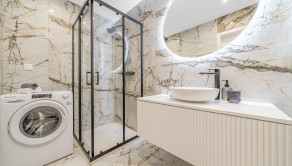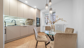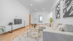 ZARIADENIE: Byt sa prenajíma kompletne zariadený - kuchynská linka so vstavanými spotrebičmi (indukčná varná doska, elektrická rúra, umývačka riadu, chladnička s mrazničkou, digestor, mikrovlnná rúra) a stôl so stoličkami, gauč, konferenčý stolík, televízor so skrinkou a takisto vstavaná skriňa v obývacej izbe, posteľ s nočnými stolíkmi, šatníková skriňa a komoda v spálni. Kúpeľňa je vybavená sprchovacím kútom, práčkou a skrinkami na mieru.