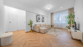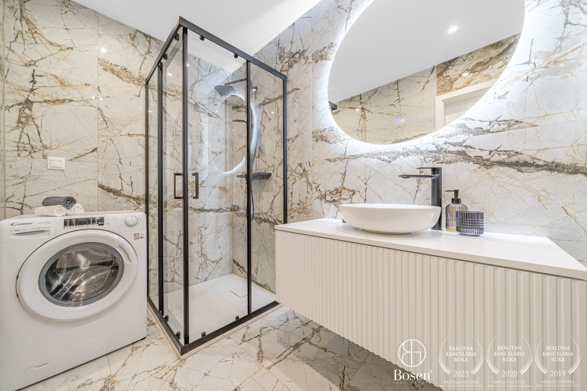 BYT: Celková rozloha je 60,35 m2 z čoho balkón tvorí 3 m2 a pivničná kobka 1,90 m2. Nachádza sa na vyvýšenom prízemí 7-poschodového bytového domu s výťahom. Byt je nový po kompletnej rekonštrukcii, pri ktorej boli použité kvalitné materiály vrátane drevených podláh a je pripravený na okamžité nasťahovanie pre jednotlivca alebo pár.